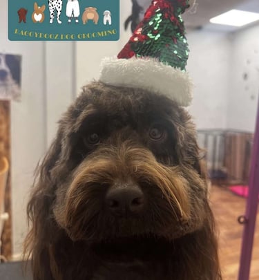 Our full grooming package includes bath, cut, nail trimming, and ear cleaning for your dog. Tailored clipping or scissor groom.